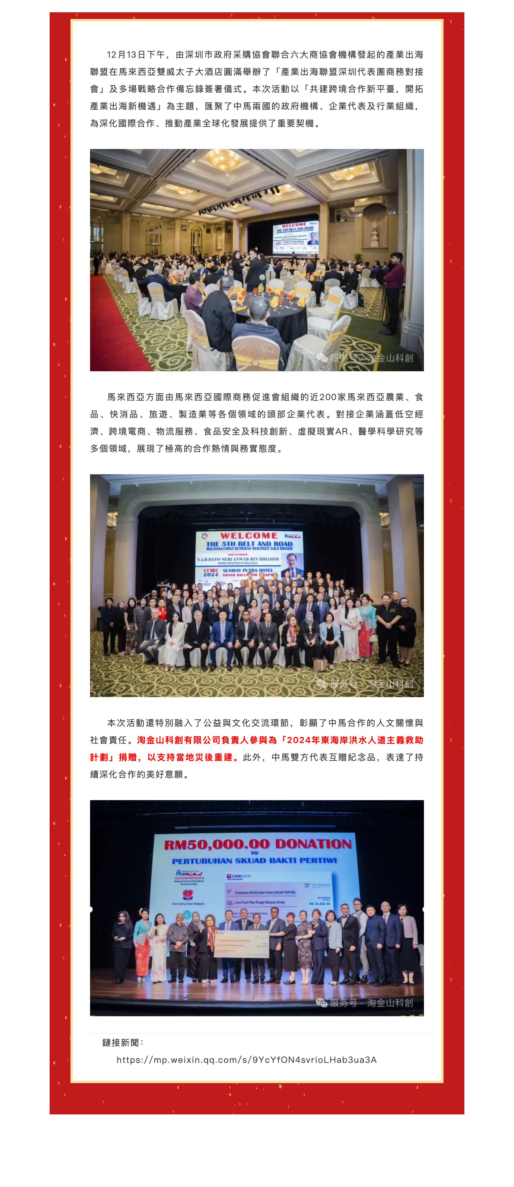 上一篇: 淘金山科創有限公司出席「2025產業全球化發展峰會暨中馬國際高科技生態產業園戰略合作簽約儀式"
